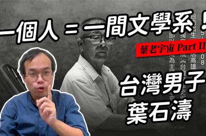 終於來到「台灣男子葉石濤」系列的第三支影片。這一集,我們不講葉石濤本身,要來講《台灣男子葉石濤》這支紀錄片。如果沒有意外,這支影片上片的時間,就是《台灣男子葉石濤》上映的日子了。在開始談論紀錄片之前,我還是先講結論:要是你對前兩集的內容有點感覺,真的很推薦去看。我刻意閃避了紀錄片中的主要內容,所以你如果看過我們的前兩集,再看《台灣男子葉石濤》,應過會有既熟悉又互補的感覺。