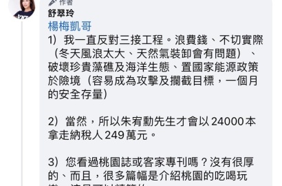 前幾天,我講到桃園市的國民黨議員刪了客家文化相關預算2.6億。這件事發酵之後,舒翠玲、牛煦庭兩位議員,在各處對我有不少「指教」。這些都無所謂,但我覺得非常奇幻的,是舒翠玲議員在截圖裡的這句話: