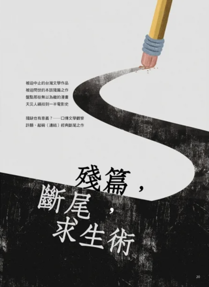 不過,還是有幾個特別的時刻,我們能有機會見到尾巴的斷面。這些戞然而止的創口,有時比結構完足的作品,能展現更多關於時代、關於作家的線索。